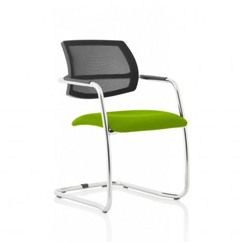 1. With munificently proportioned seats, stunning looks and the inclusion of a comfortable, curved mesh back, the Swift family of chairs will keep your guests coming back for more. Stackable, lightweight and available in both a cantilever frame and 4 leg visitor frame version, the Swift will give your space the lift it needs.