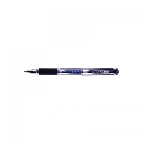 1. This Uni-Ball Gel Impact Rollerball Pen contains ultra smooth gel ink, which is fade resistant, water resistant and tamper proof. The pen features a 1.0mm tip for a broad 0.6mm line width, and a rubber grip for comfort in use. This pack contains 12 pens with blue ink.