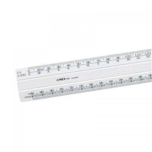1. This Linex Flat Scale Ruler features six different measuring scales for technical drawings. It is made from white matte ABS with 3mm thickness and has four bevelled edges. 30cm in length, it comes with colour-coded inserts to make selecting a scale easy.