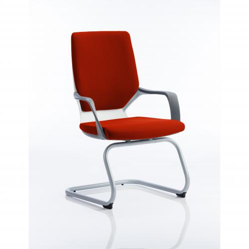 1. Elegant white or black acrylic shells cradle the most stylish of executive chairs andndash; the Xenon. The shell swoops down from the generously proportioned backrest to integral slim, shaped, arms which fold around to the underside of the seat shell. A high quality knee tilt ensures maximum comfort and avoids discomfort through upper leg blood vessel constriction. High density moulded foams and an integral contoured lumbar support add to the easy-seating package. A brushed aluminium five star base continues the focus on sophisticated styling at ground level. In chemistry Xenon is a member of the noble gas family andndash; in seating it is a member of the style and comfort family.