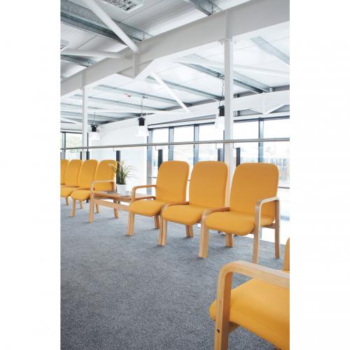 1. Yealm is a stylish reception soft seating solution with a curved laminated wooden frame and ergonomic back design that allows visitors to wait in comfort whenever they visit the office. This modular seating solution comes with a solid wood top table and a selection of fabric options, so you can custom design the seats to fit your office perfectly