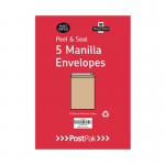 Postpak C4 Peel and Seal Manilla 115gsm 5 Packs of 20 Envelopes 9731119 POF27428